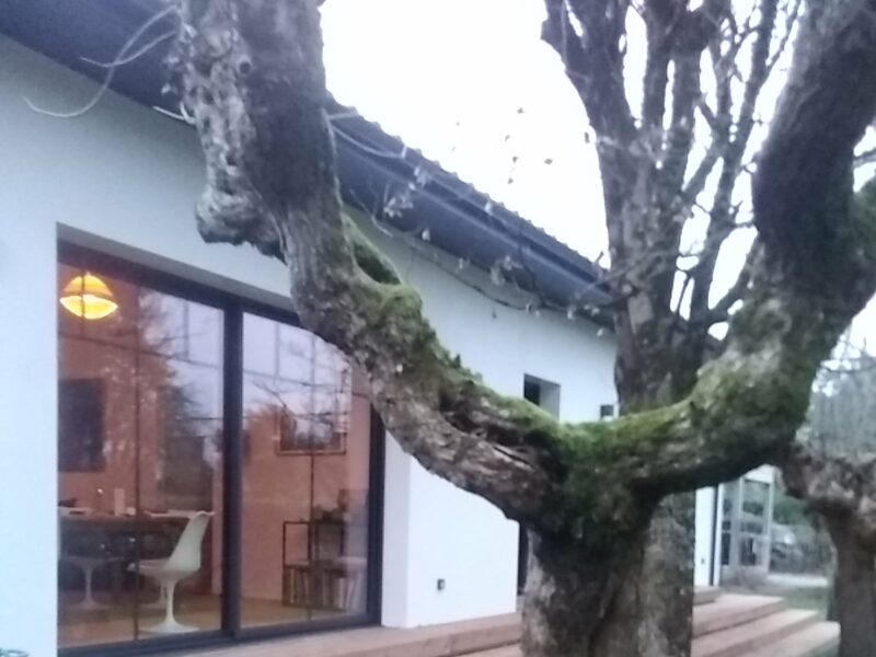 Trottoir de maison jusqu’à la porte d’entrée et côté chambre.