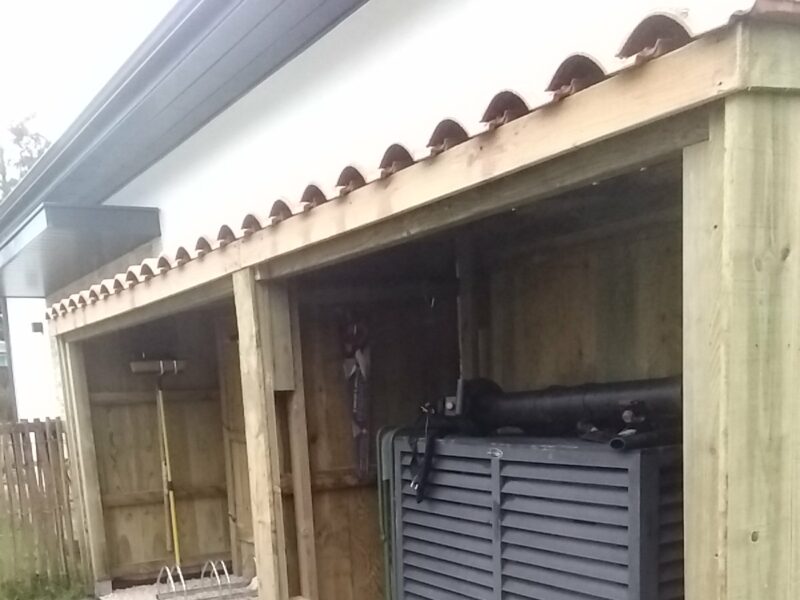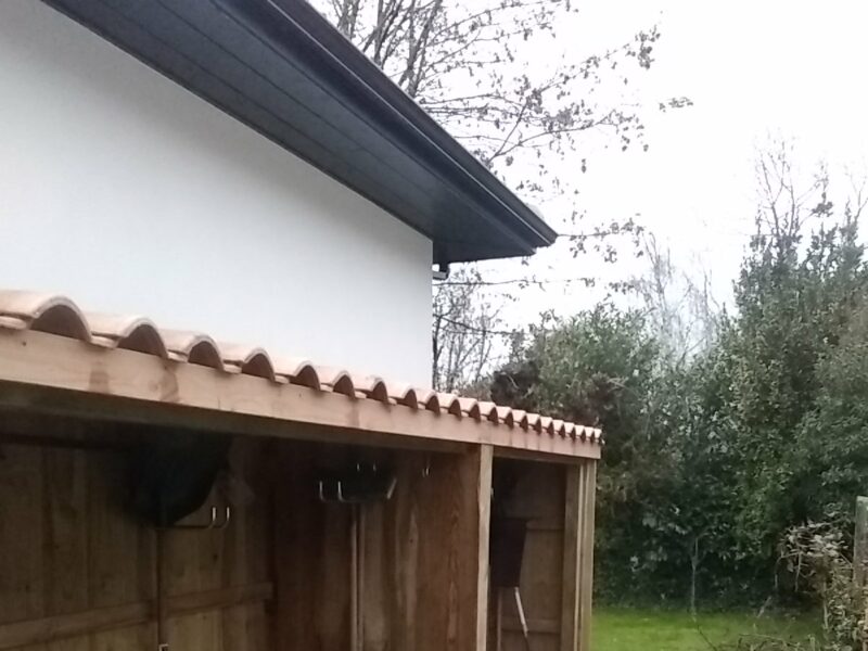 Conception et fabrication d’un petit abri à vélo et outillages servant aussi pour cacher la pompe à chaleur.