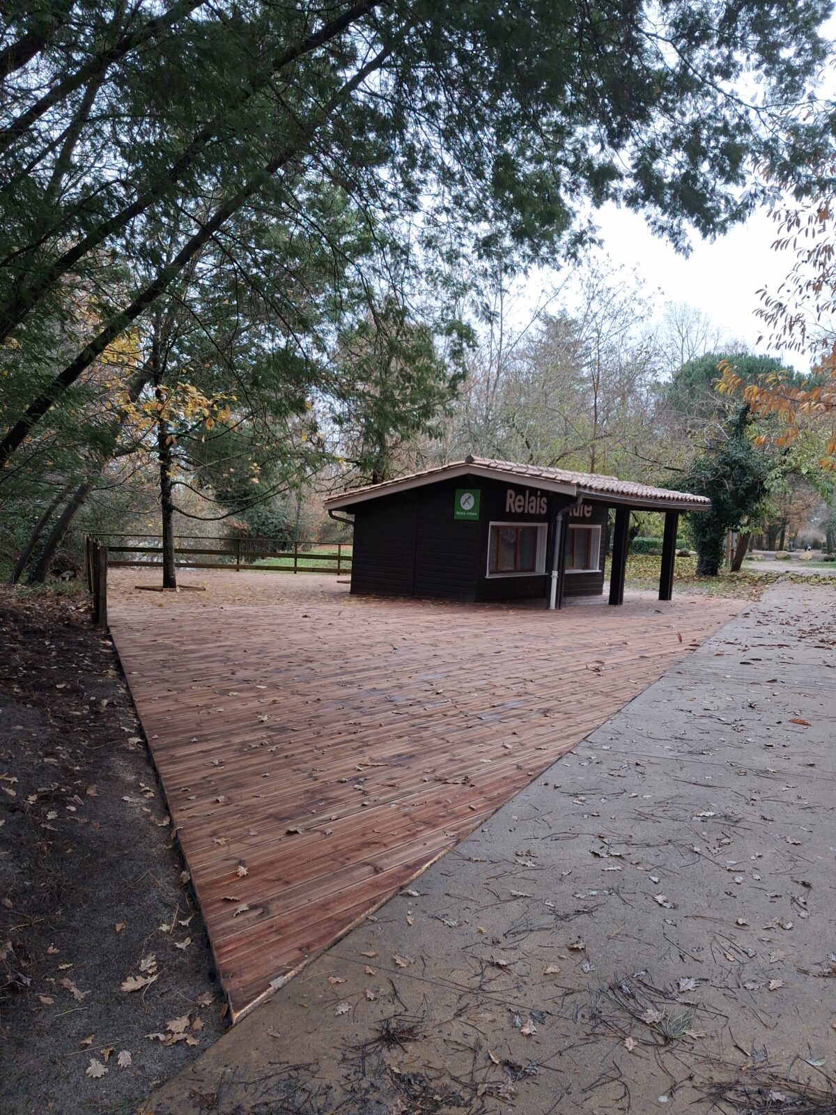 réalisation d un cabanon ossature bois et local de la piscine .bardage bois volige douglas et couvre joint .toiture une pente en tuile .