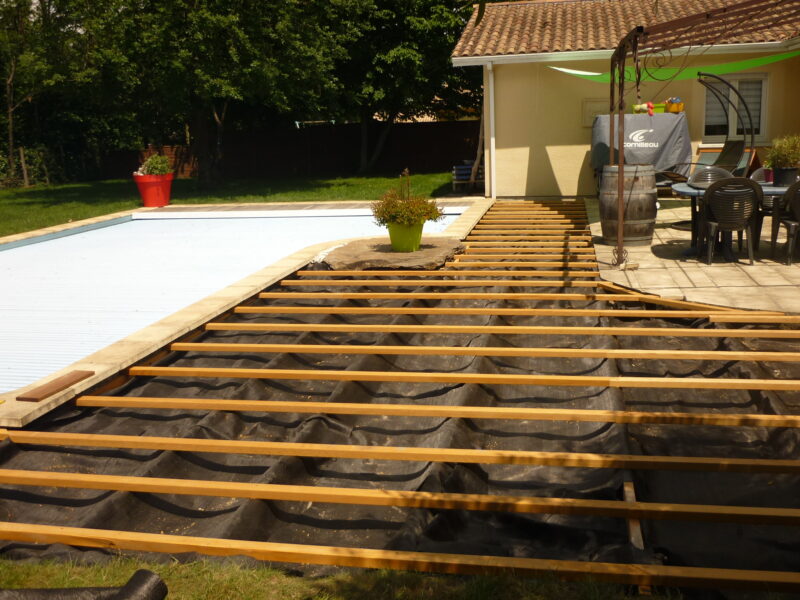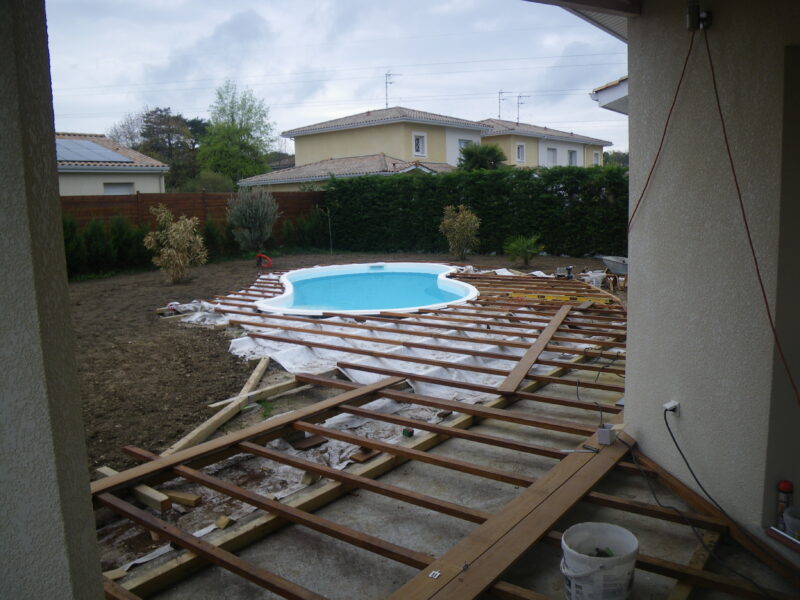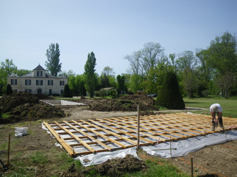 Le soubassement reste une étape très importante, suivant le support sur dalle béton ou sur terrain naturel, la structure de la terrasse se construit en simple ou double ossature .